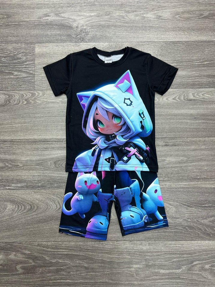 Diger markasının siyah renkli, kedi temalı baskılı street wear takımı, rahat ve şık bir görünüm sunar.