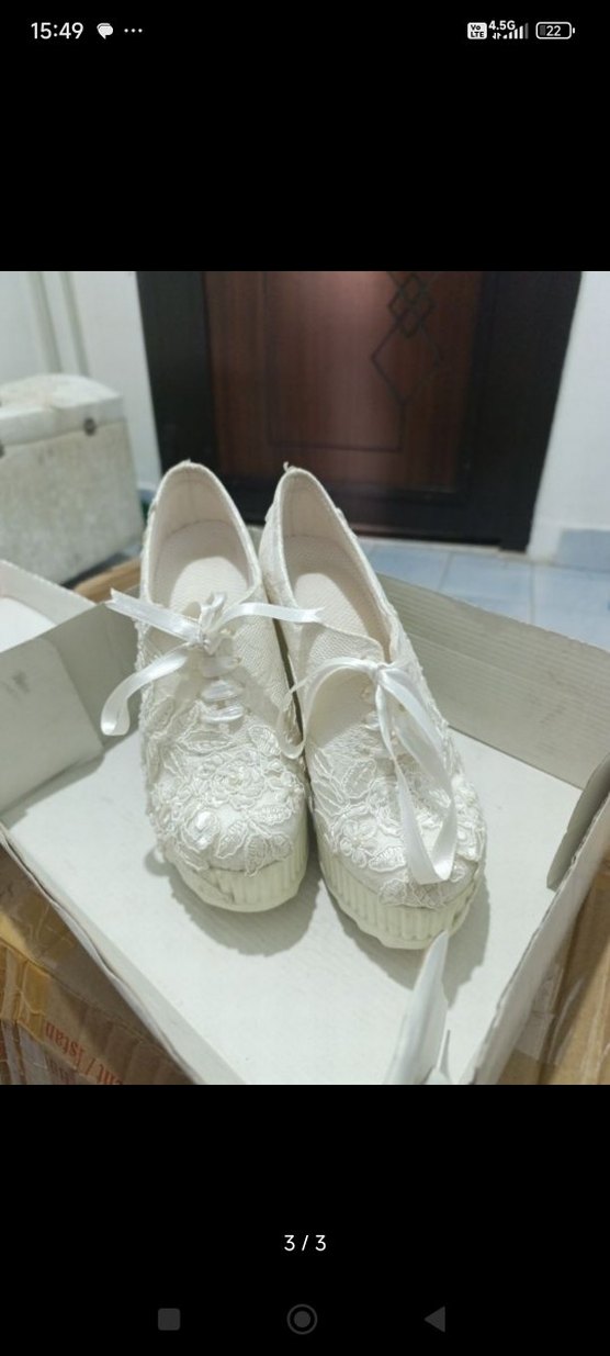 Diger markalı, beyaz dantel işlemeli düğün ayakkabısı, klasik tarzda ve kauçuk tabanlıdır. Şık ve zarif görünüm sağlar.