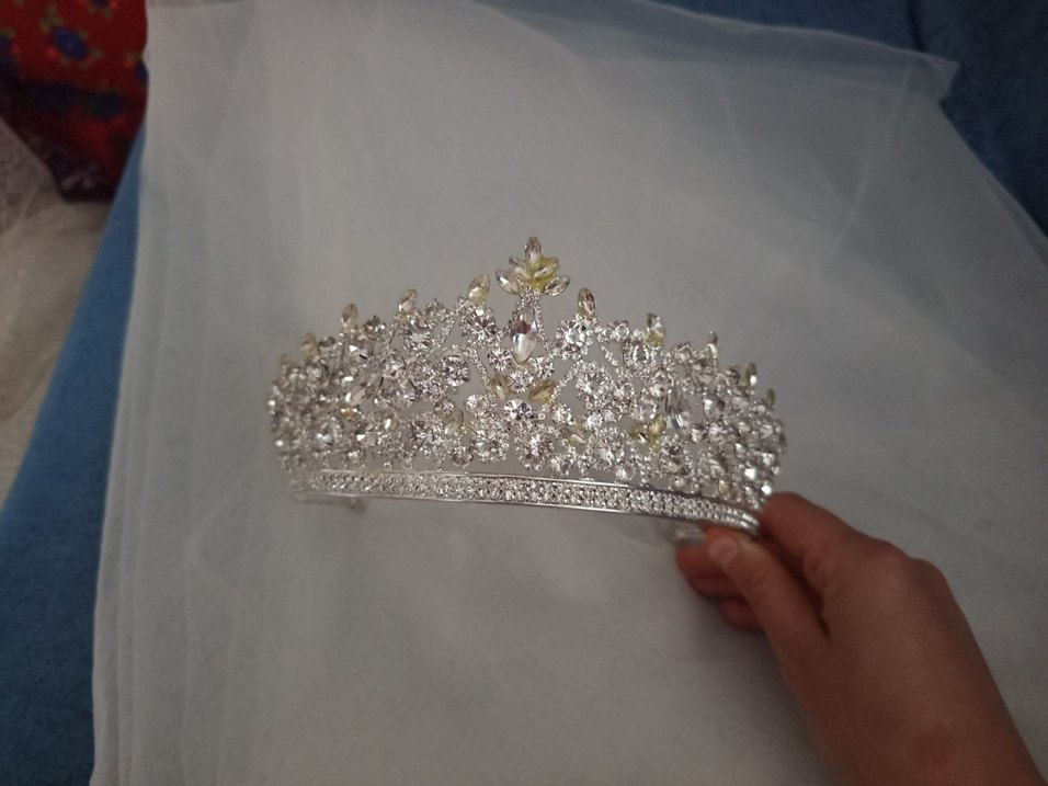 Diger markasının beyaz payetlerle süslenmiş düğün tacı, klasik ve gösterişli bir şıklık sunar.