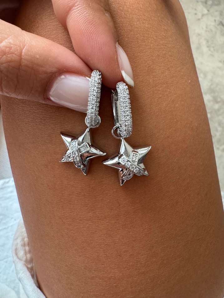 Diger markasının beyaz payetli mini küpeleri, nakışlı yıldız deseniyle romantik akşamlar için parlak ve şık bir seçenek sunar.✨
