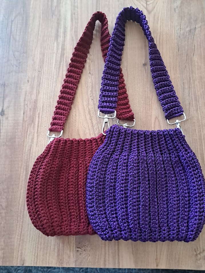 Örgü kumaştan yapılmış, bohem tarzda, mor renkli kadın çantası. Rahat ve günlük kullanım için uygun, renkli ve desensiz tasarım. istediğin her renk mevcuttur bilginize