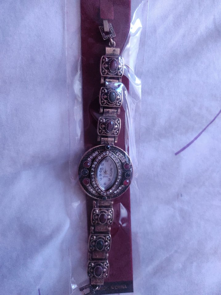 Diger marka, bordo renkte, tokalı kayışa ve vintage tarzı metal süslemelere sahip kadın kol saati, bohem ve retro havası taşır. ⌚