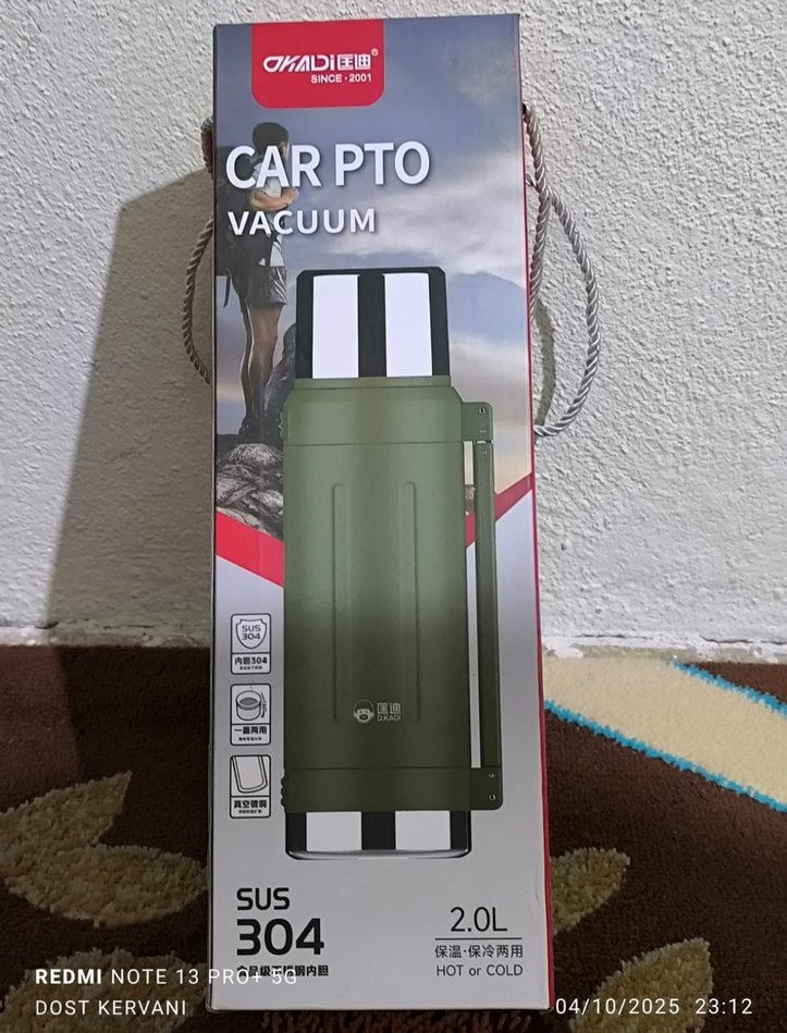 2000ml kapasiteli koyu camel renkli şişesi. Sıcaklığı koruyan vakumlu izolasyon ve güvenli kapaklı seyahat termosu.