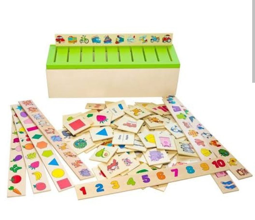 Diger çok renkli ahşap parçalarla sayı, şekil ve resim öğrenimini destekleyen eğitici oyuncak. Sadece 1 tane uzun ahsap kart tamir edildi. Bir iki küçük kart da kayboldu.