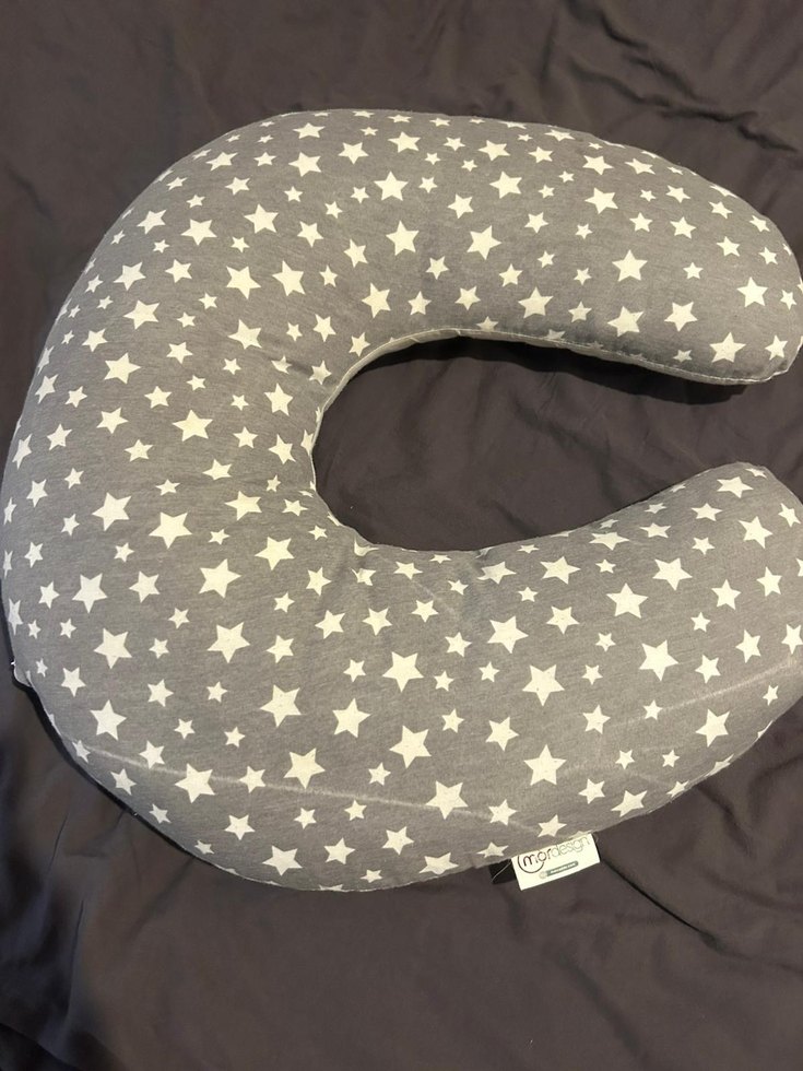 Diger markasının gri renkli, yıldız desenli emzirme ve hamilelik yastığı, rahatlık ve destek sağlar.