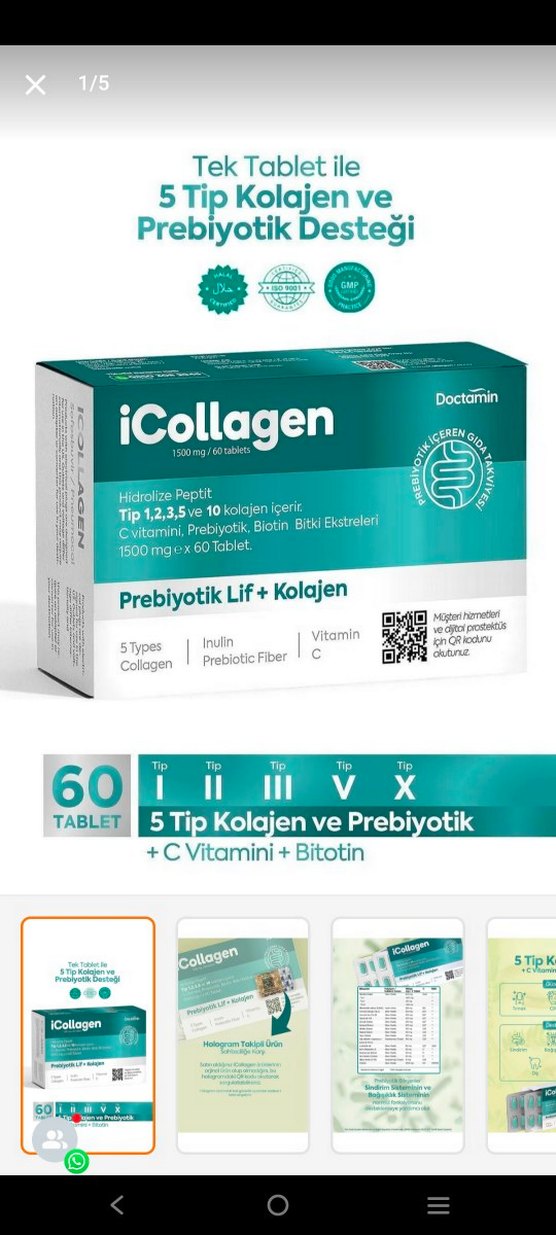 Diger iCollageni, 5 tip kolajen, prebiyotik lif, C vitamini ve biotin içeren 60 tablet ile cilt ve eklem sağlığını destekler.