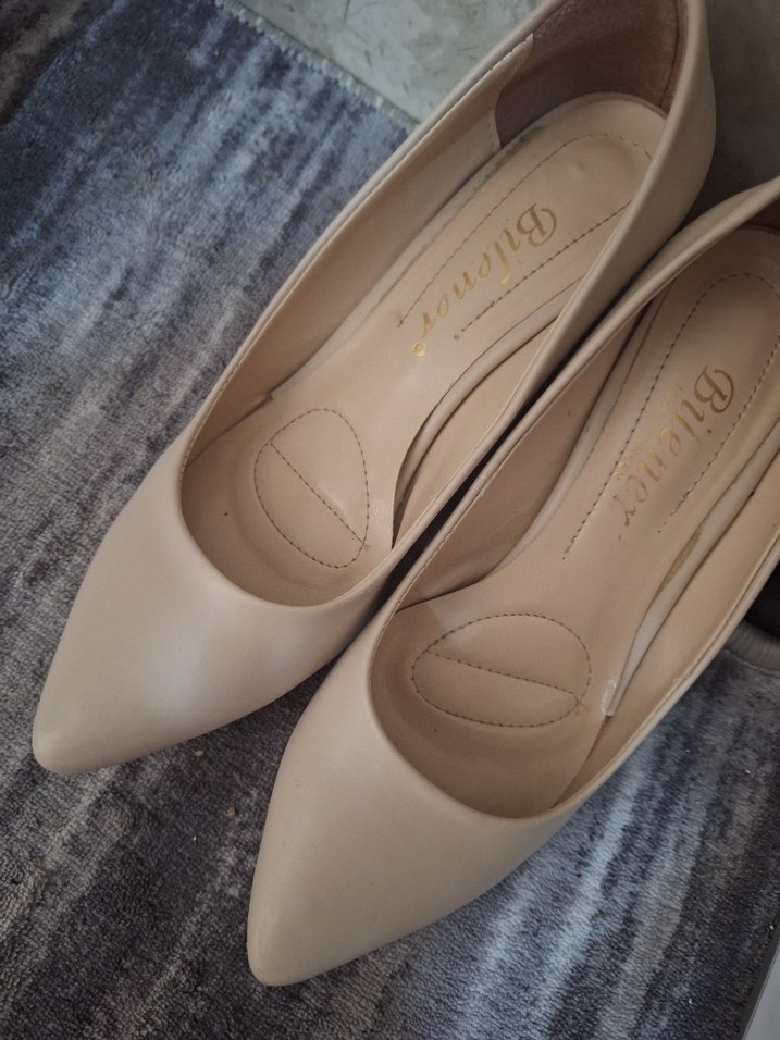 Diger markasının bej rengi, tokalı, modern klasik stilettosu. Rubber malzeme kullanılmış, ofis için Paris tarzı şıklık sunar. 1 kez kullanılmıştır.