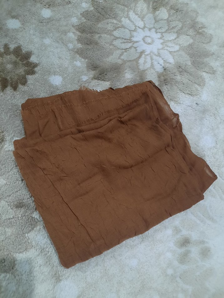 Kahverengi bambu kumaştan, salaş ve bohem tarzda sade, rahat bir şal. Yumuşak ve nefes alabilir kumaş.