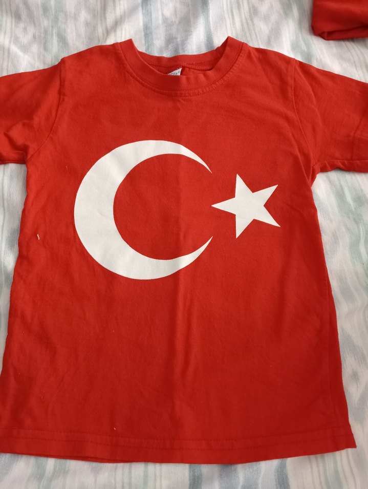 Parlak kırmızı renkte, ay ve yıldız baskılı çocuk atleti. Yumuşak kumaştan üretilmiştir. 1 kere giyildi