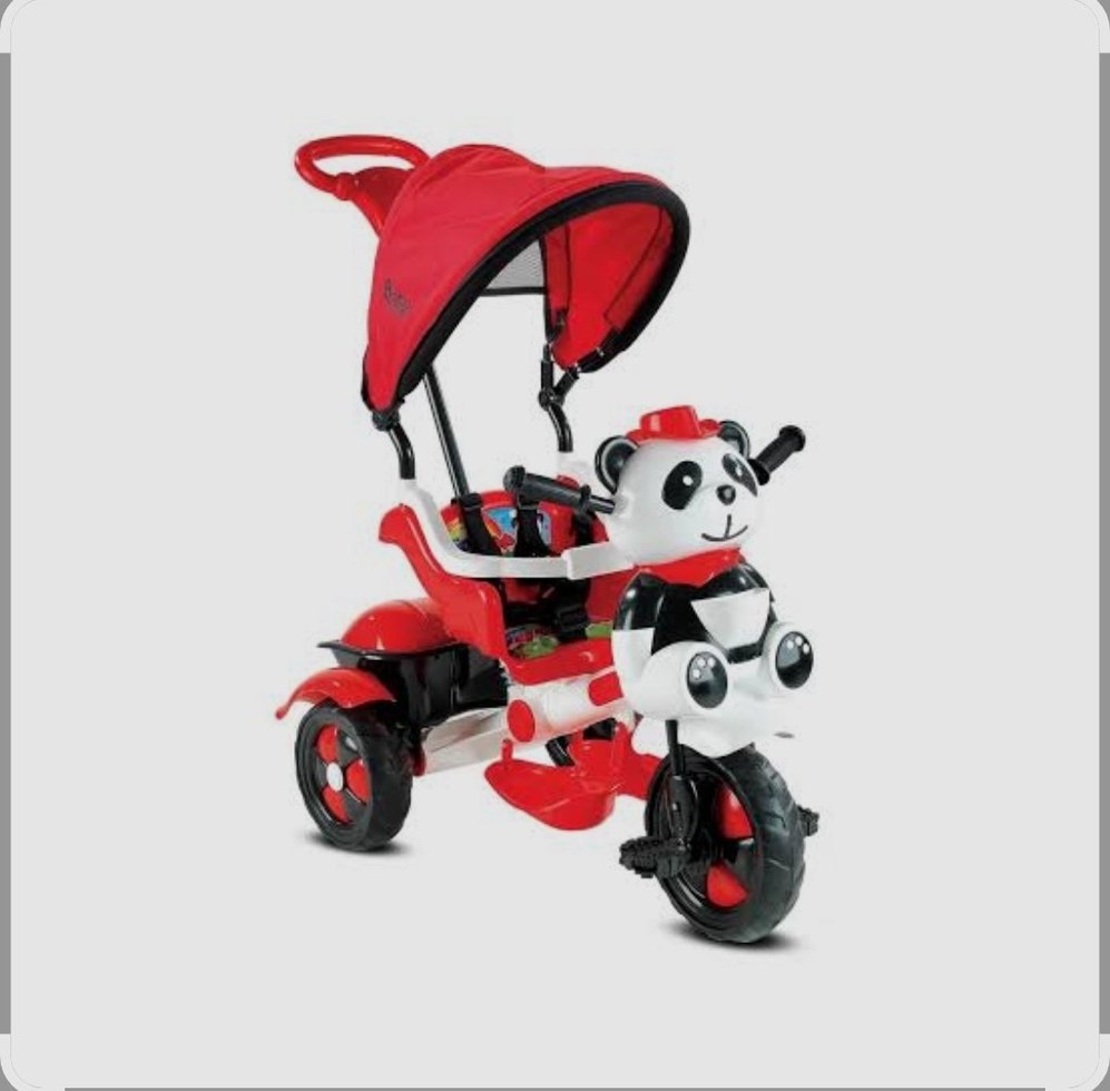 Kırmızı renkli, panda temalı ve güneşlikli Diger üç tekerlekli bisiklet. Kolay kullanım için itme sapı bulunur. oturma alanında sünger çıktı harici deforme yoktur. Samsun içi olması tercihimdir.