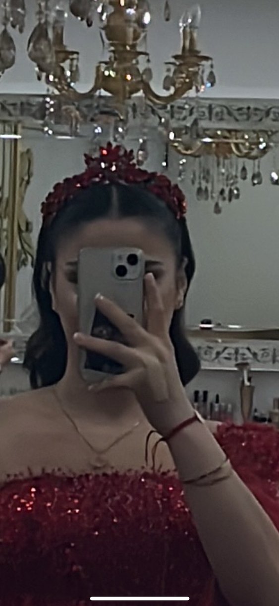 Diger markasına ait koyu kırmızı payetli gelin tacı ve uyumlu küpe seti, bohem tarz ile klasik zarafeti bir araya getirir. Sadece kınamda taci kullandım küpeyi kullanmadım.