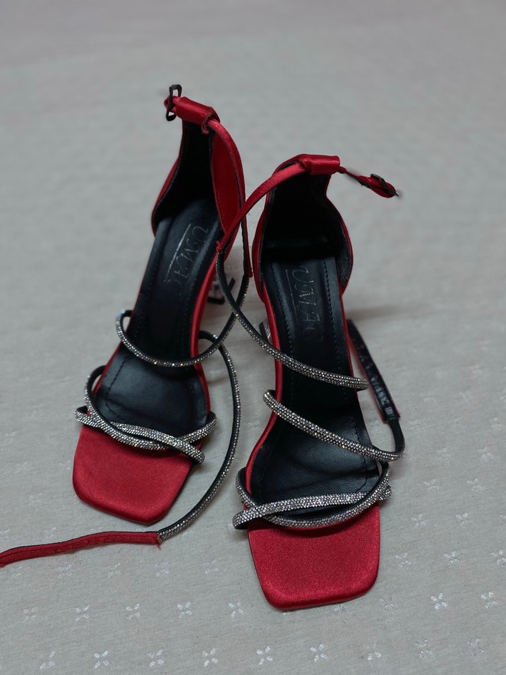 Diger markasının kırmızı yılan desenli stiletto topuklu, tokalı kayışlı ve cesur gotik tarzda tasarlanmış akşam ayakkabısı.