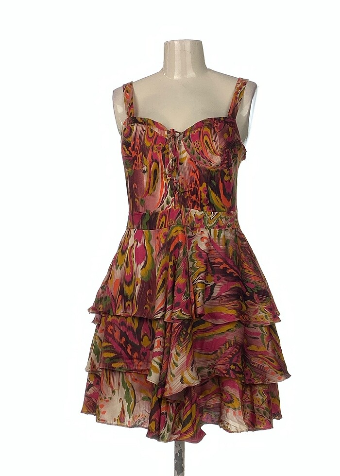 askılı fırfır detay kendinden desenli Malzemeler Polyester, Pamuk Ölçüler Göğüs: 36cm, Uzunluk: 80cm Aynı gün kargoya verilir. Kontrolleri Gardrops tarafından yapılmıştır.