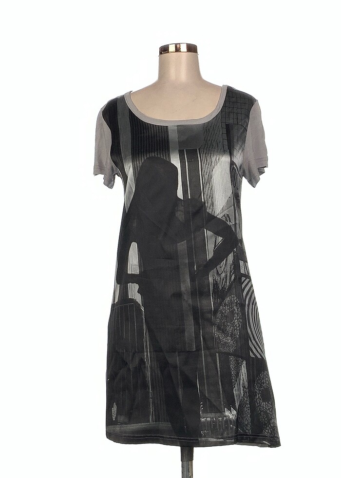 desenli yuvarlak yaka kısa kollu Malzemeler Polyester, Elastan, Viskoz Ölçüler Göğüs: 4cm, Uzunluk: 80cm Aynı gün kargoya verilir. Kontrolleri Gardrops tarafından yapılmıştır.