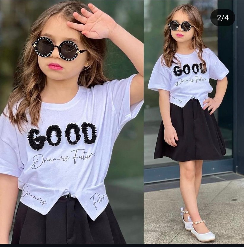 Diger Kız Çocuk Beyaz Parlak Baskılı etek Tişört