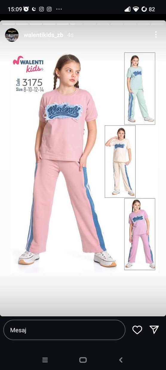 Diger kız çocuk pembe rahat kesim eşofman takımı, yumuşak ve sıcak kumaştan, kısa kollu ve bisiklet yaka, baskılı desene sahip. 8-14 beden arası mevcuttur.