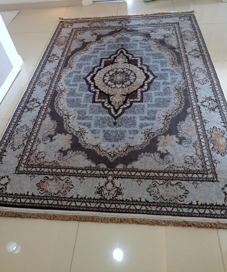 Diger markalı halı, gri ve gıri kahve tonlarda klasik desenlere sahiptir. Ev dekorasyonuna zarif bir dokunuş katar uzunluğu 2 25 genişlik 1 45