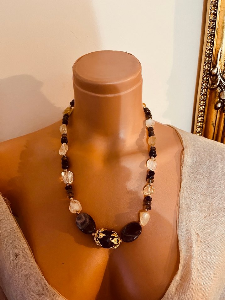 Doğal ametis ve sitrinle tasarlanmış kolye