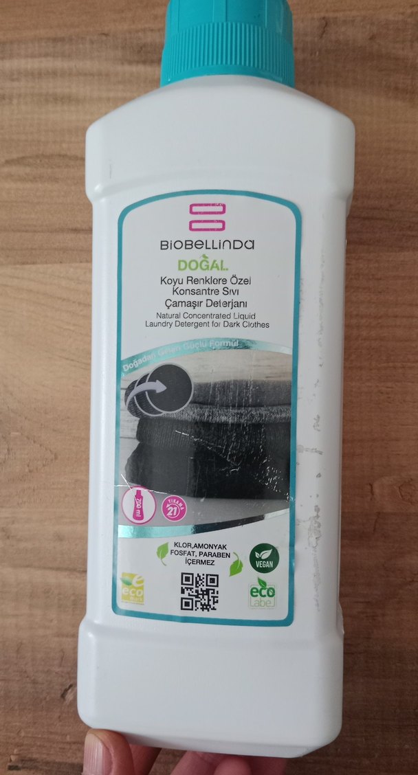Diger markasına ait, koyu renkli çamaşırlar için konsantre sıvı deterjan. Klor, amonyak, fosfat ve paraben içermez. Vegan ve çevre dostu formül.
