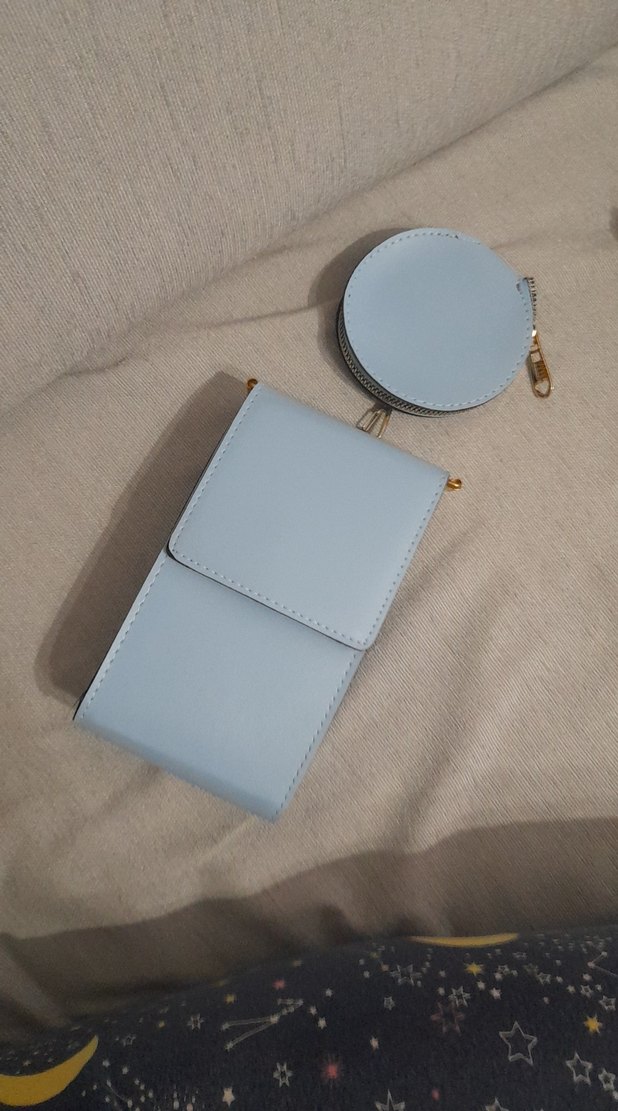 Pastel mavi deri kadın cüzdan ve küçük yuvarlak fermuarlı mini çanta seti, minimalist normcore tarzıyla günlük kullanıma uygundur. hiç kullanmadım rwnginden dolayı kıyafetlerime uymuyor