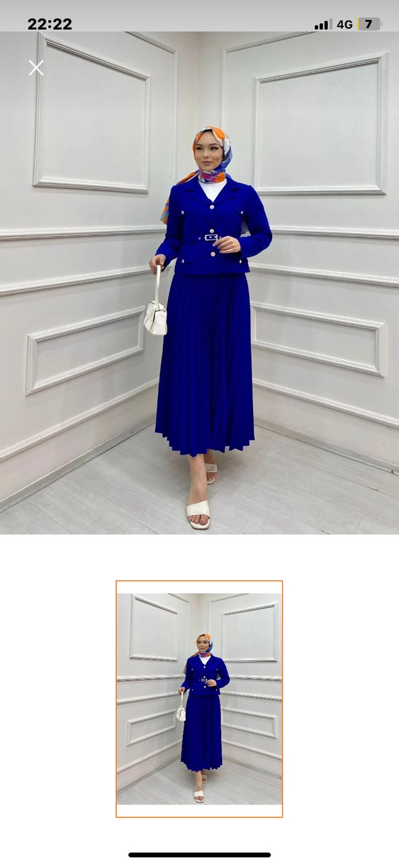 Diger markanın mavi renkli, uzun kollu, piliseli ve regular fit uzun kadın takımı. Ofis kullanımı için klasik şıklık sunar.