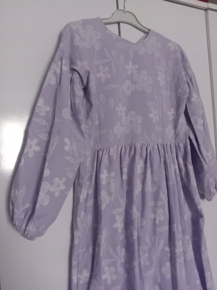 lila renk çiçekli kolları lastikli uzun tesettür yazlık elbise burdan aldım ama hiç giymedim çok tarz ve tatlı bir elbise alana şimdiden hayırlı olsun