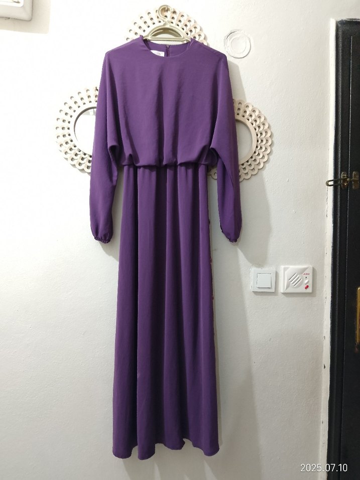 Diger markasının mor uzun elbisesi, yüksek yakalı ve uzun kollu drapeli tasarıma sahiptir. Yumuşak sentetik kumaştan yapılmış, bol kesim bohem tarzı sunar. Desensiz ve günlük kullanıma uygundur. 40 42 beden uyumludur