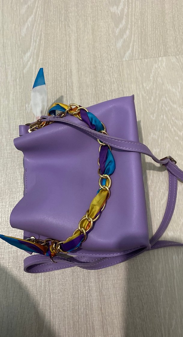 Diger markanın mor renkli çantası, zincir detayında renkli kumaş kullanılarak bohem ve retro tarzı yansıtıyor. Sentetik kumaştan, günlük kullanıma uygun.