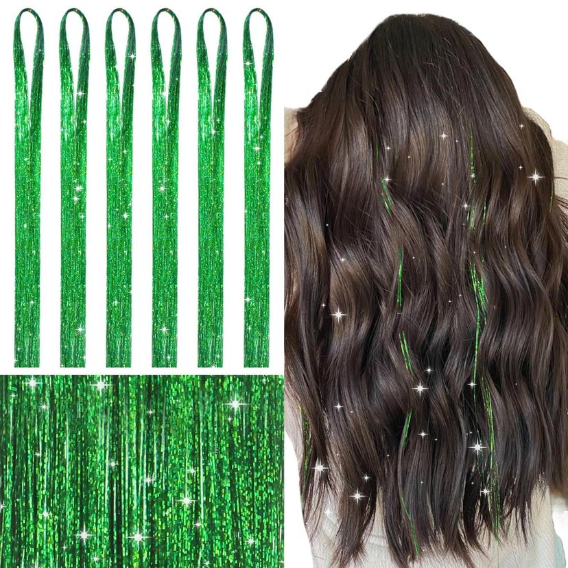 Diger marka parlak yeşil saç aksesuarı ipleri, saça ışıltı ve renk katar. Festivaller için uygun. ✨
