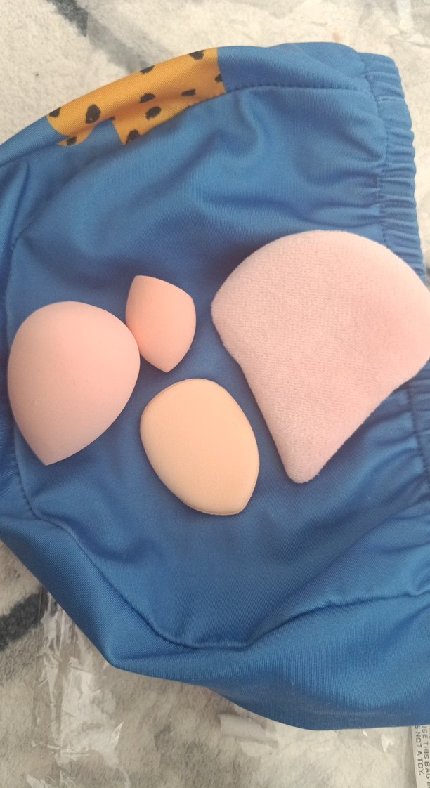 Diger markasına ait pastel bej renkli, farklı şekillerde makyaj süngerleri seti. Fondöten ve kapatıcı uygulaması için yumuşak dokulu.