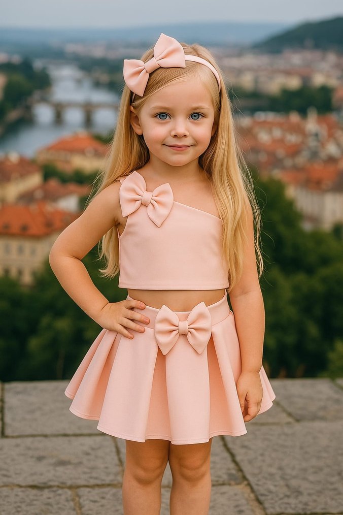 Diger Pembe Kız Çocuk Fiyonklu 3.lü takım