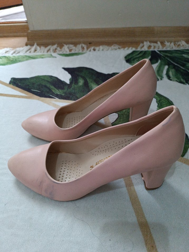 Diger marka, pastel pembe renkte, lastik malzemeden yapılmış, klasik ve şık kadın stiletto ayakkabılar. Rahat ve desen içermeyen tasarım sunar. ufak tefek defolar mevcut