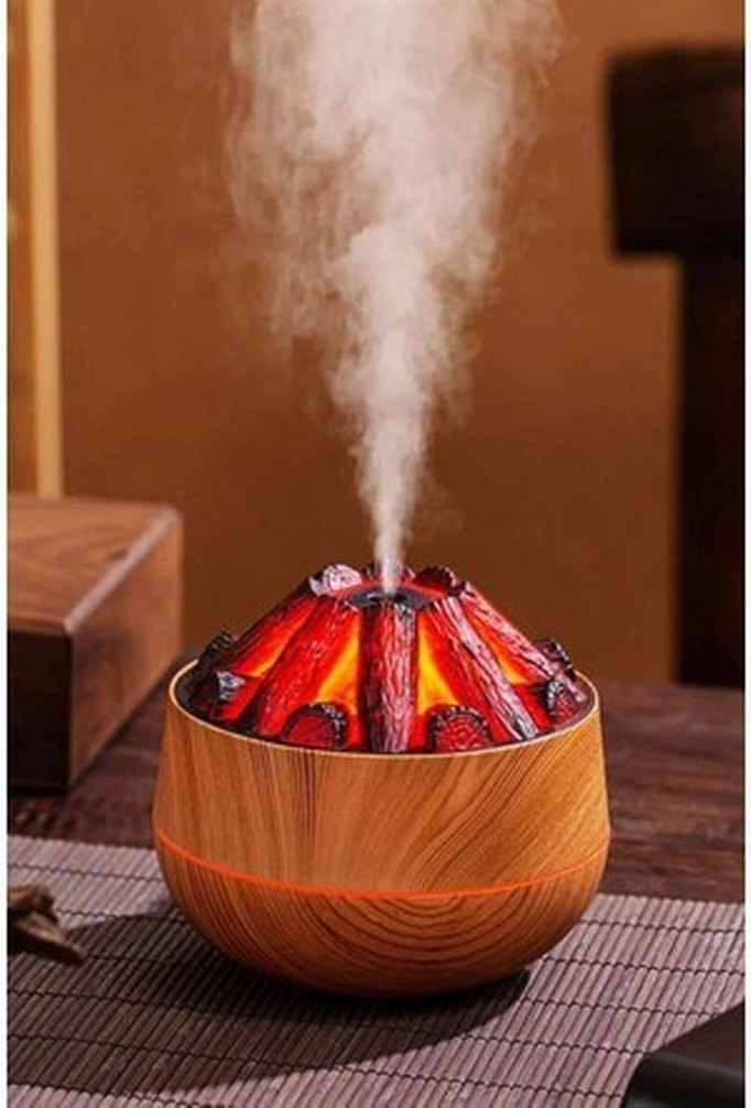 Diger renkli hava temizleyici ve nemlendirici, deve tüyü renkli ahşap tasarıma ve buhar çıkaran canlı üst kısma sahiptir. ️