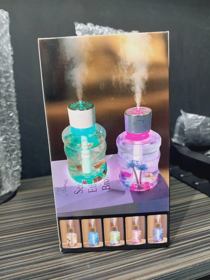 Diger renkli hava temizleyici ve nemlendirici, görünür buhar çıkışı ile hava kalitesini ve nem seviyesini artırır.