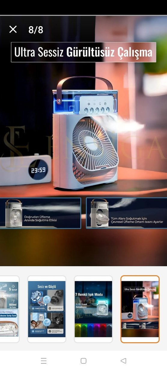 Diger fan, anında soğutma için doğrudan üfleme ve 7 renkli ışık modu sunar. Çevresel soğutma ayarları ve sessiz çalışma özelliği bulunur. Beyaz gövde ve renkli ışık efektleri içerir. ️
