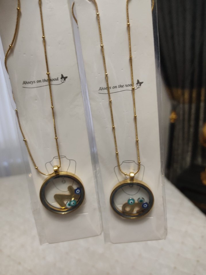 Diger markasına ait, renkli nakış detaylı, altın renkli zincirli bohem tarzda kadın kolyesi. Yuvarlak kolye ucu ve dekoratif öğeler içerir.