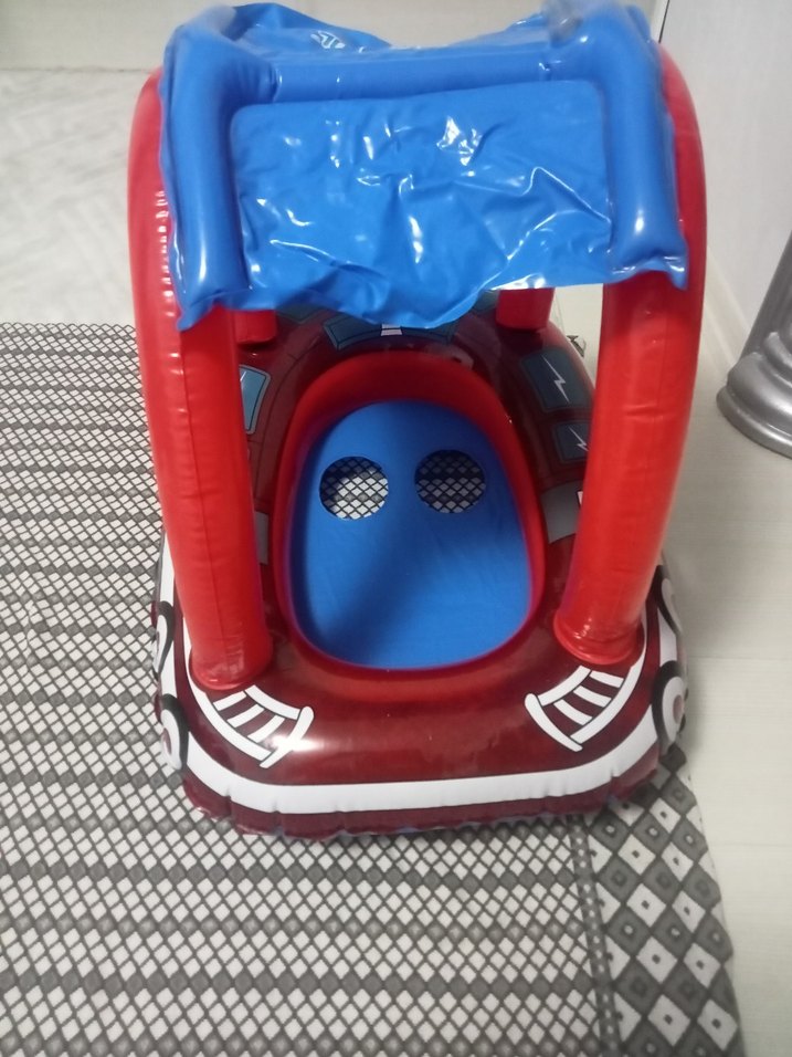 Diger'in şişme su oyuncağı kırmızı taban ve mavi tente ile renkli bir tasarıma sahiptir.
