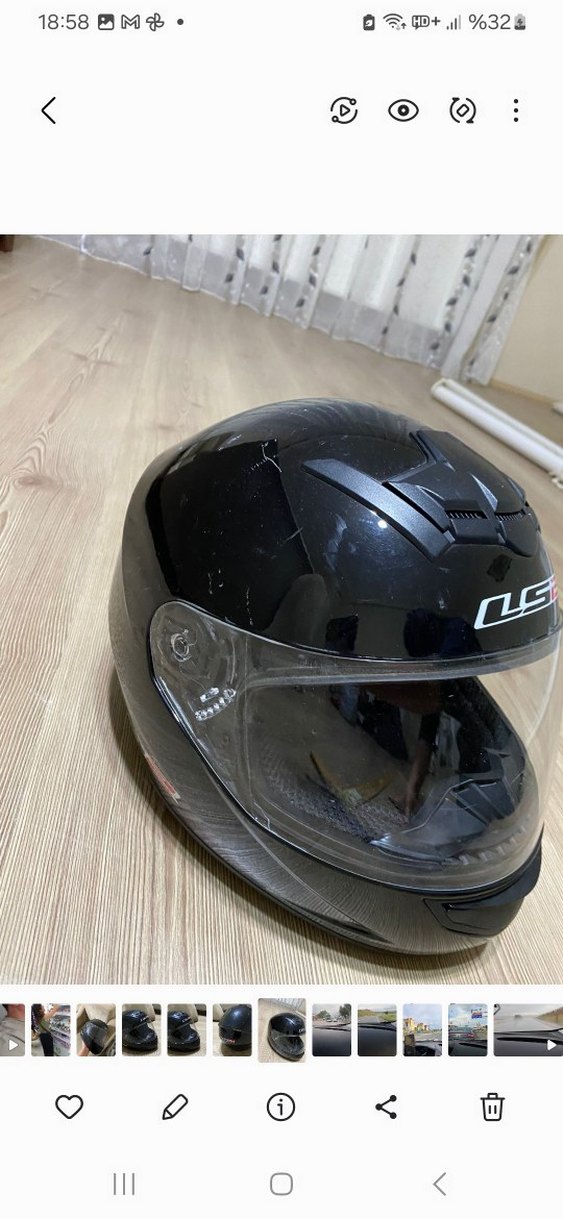 Plastik malzemeden siyah biker kask, tokalı kayış ve şeffaf vizöre sahip. Desensiz koyu renkli şık tasarım. ️