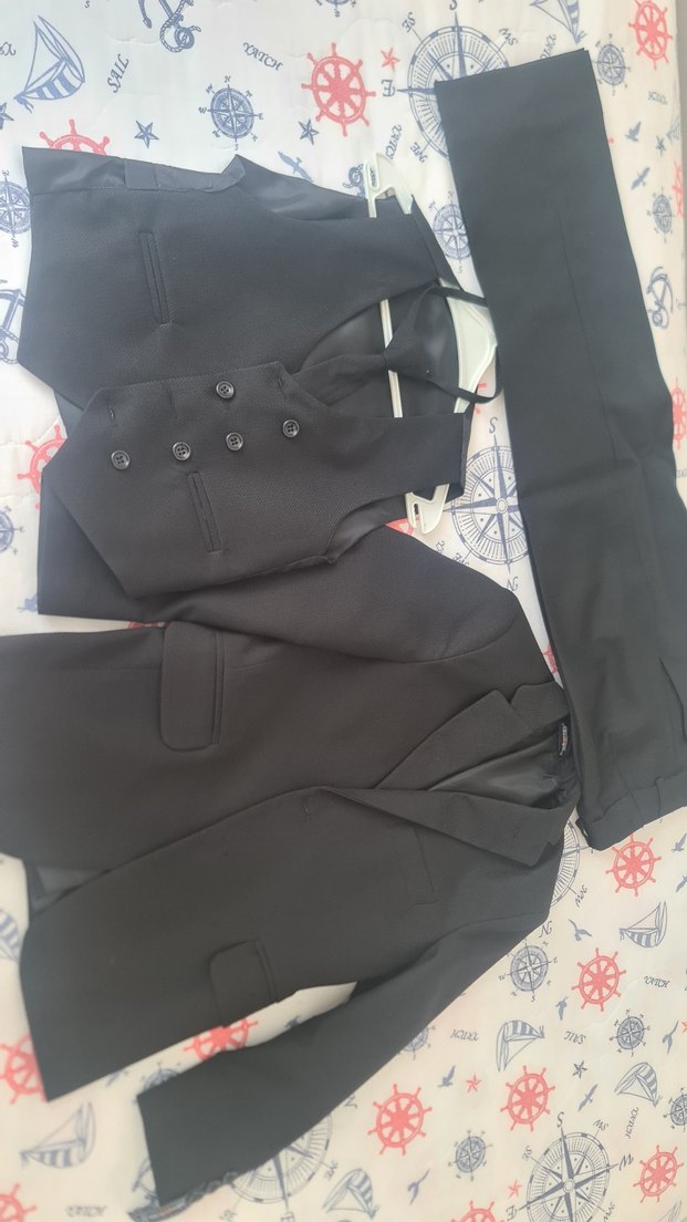 Diger marka siyah çocuk takım elbise, regular fit, keskin yaka ve düğmeli ön detaylarına sahiptir. 1 kere giyildi 7 8 yaş uygundur