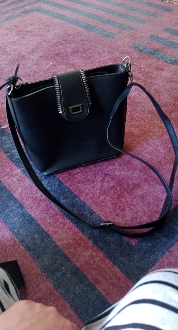 Diger markasının siyah deri kadın çantası, fermuarlı kapanış ve minimalist tasarıma sahiptir, trend ve gotik tarzlar için uygundur.