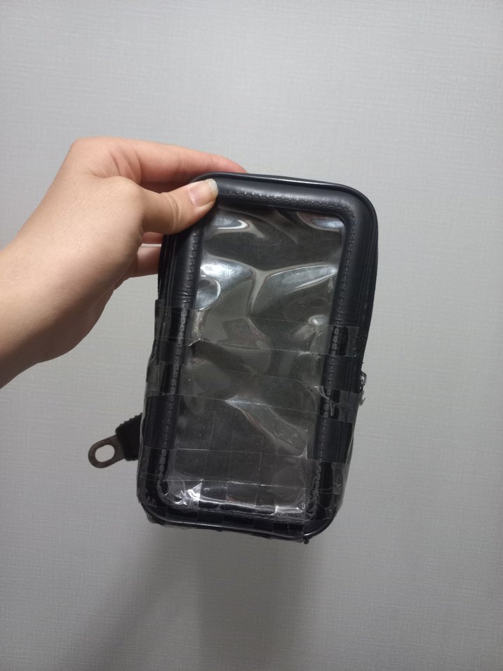 Diger markasının siyah renkli, fermuarlı ve şeffaf ön yüzeyli biker tarzı telefon tutucusu. ️