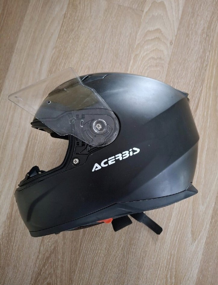 Diger markasının siyah mat baskılı motosiklet kaskı, kauçuk malzemeden, tokalı ve şeffaf vizörlü. Yanında "ACER3iS" yazısı bulunur. ️