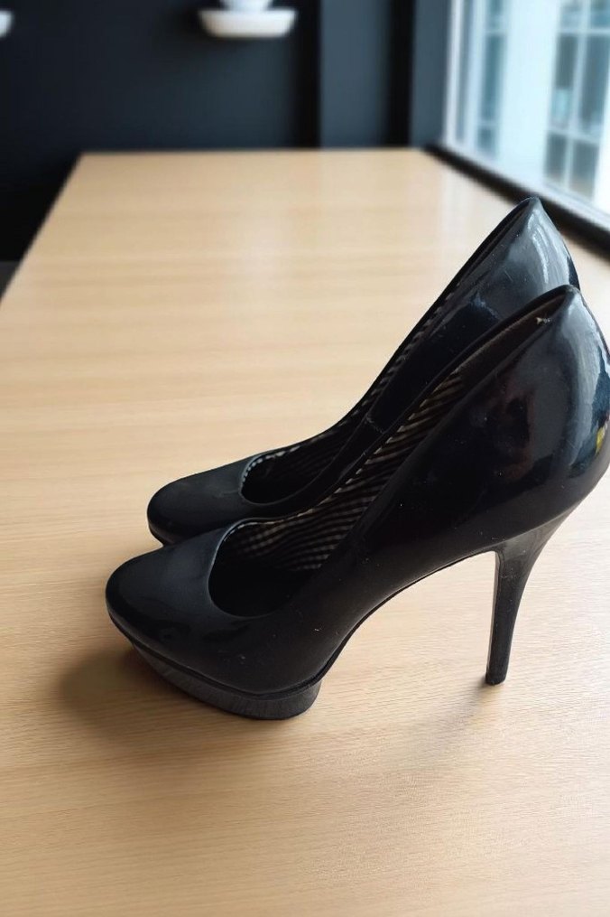Diger markasının siyah rugan platform topuklu ayakkabıları, stiletto topuklu Parlak kauçuk malzemeden üretilmiştir, gotik ve cesur tarz için uygundur. Kusuru yok 2 kere giyildi Boynerden almıştım