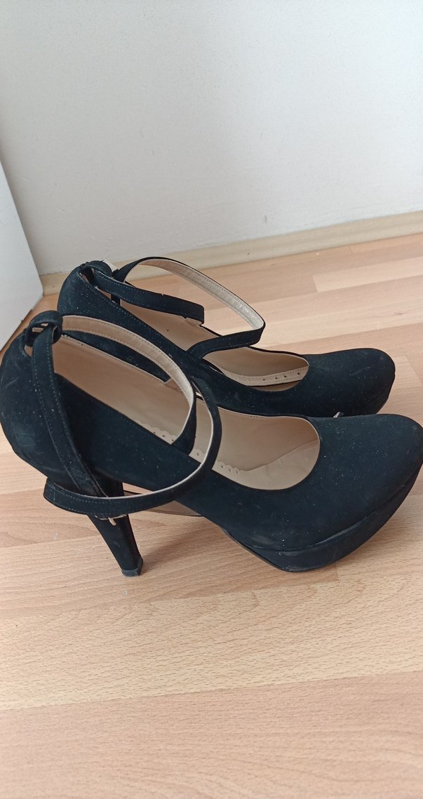 Siyah platform topuklu, stiletto topuklu ve tokalı detaylı kauçuk malzemeden yapılmış ayakkabılar. Minimalist ve gotik tarzlara uygun, romantik akşamlar için ideal.