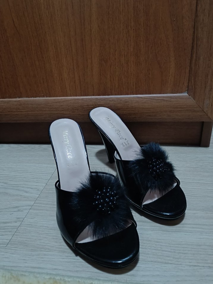Diger Siyah Tüylü Yüksek Topuklu Kadın Terlik