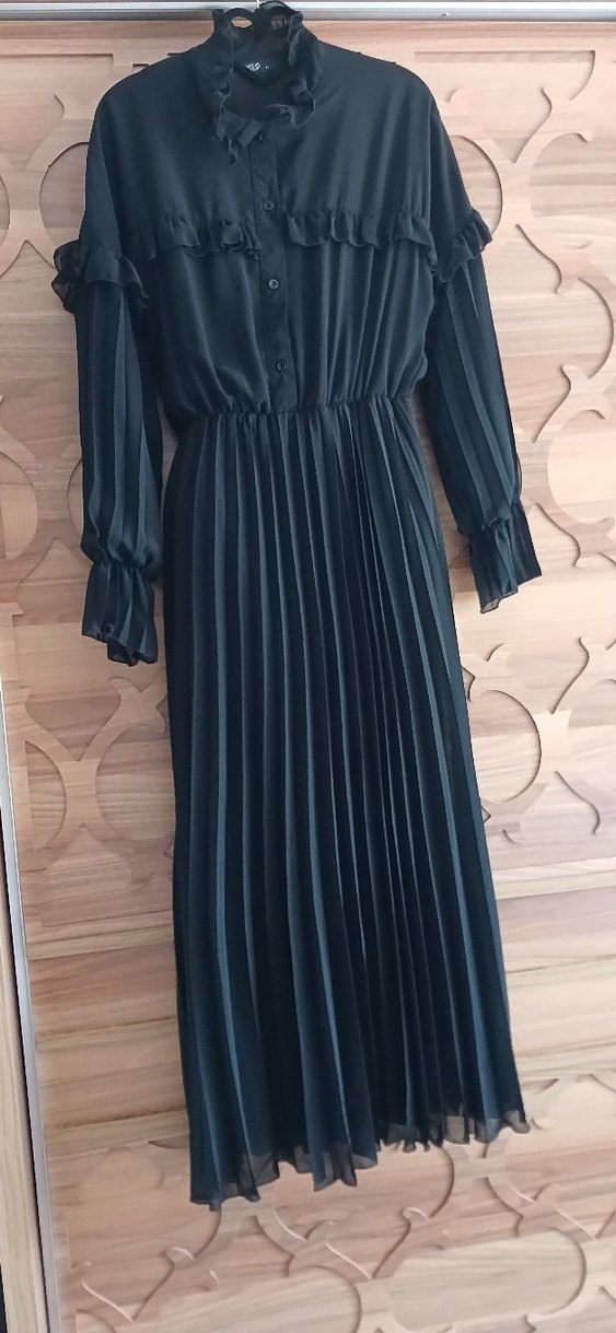 Diger Siyah Uzun Piliseli Kadın Elbise