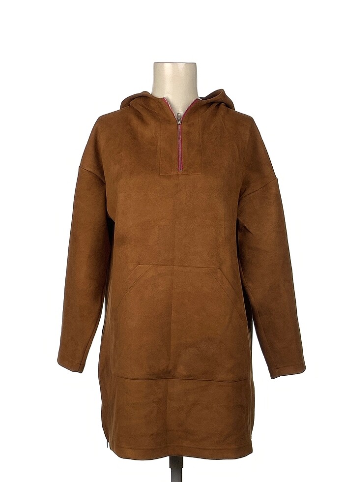 kapüşonlu kanguru cepli fermuar detaylı süet görünüm Malzemeler Pamuk, Lyocell Ölçüler Göğüs: 57cm, Uzunluk: 79cm Aynı gün kargoya verilir. Kontrolleri Gardrops tarafından yapılmıştır. Orjinal ve defosuzdur.