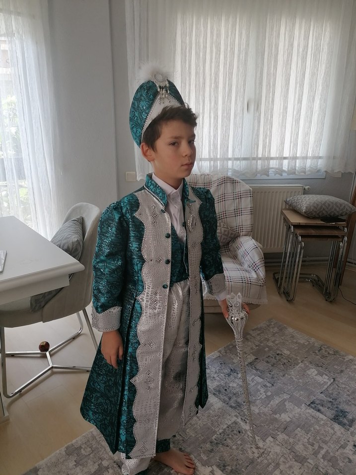 Diger Turkuaz Gri Kürklü Etnik Erkek Çocuk Kıyafeti