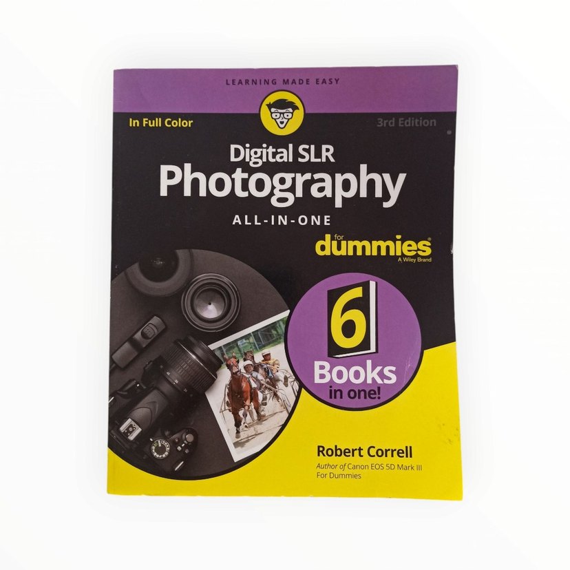 Dijital SLR fotoğrafçılığı hakkında kapsamlı bilgiler içeren, altı kitabı bir araya getiren, kolay öğrenim sağlayan tam renkli bir kitaptır. "Digital SLR Photography all-in-one for dummies". 592 sayfa, yeni. Fiyat sondur.