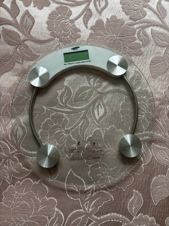 Bu gri dijital terazi, net cam platform ve hassas ölçüm için dört yuvarlak metal sensöre sahiptir. ⚖️ sadece pil kapağı durmuyo orayı bantladık